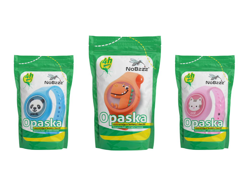 NoBzzz® to naturalne i przebadane opaski, które po odpakowaniu uwalniają ekstrakty olejków, a dzięki nim odstraszają komary i meszki.